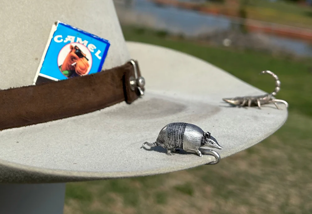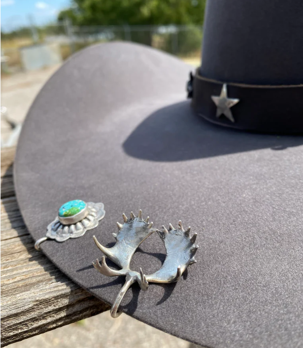 A collection of hat jewelry and pins for men and woman that can adorn a hat to a tie. 18K Gold, silver, turquoise and a variety of natural stones- this array is authentic, high quality and timeless to keep your hat looking as classy as you. Hat sliders that slip on to your hat and give it charm and a personality.